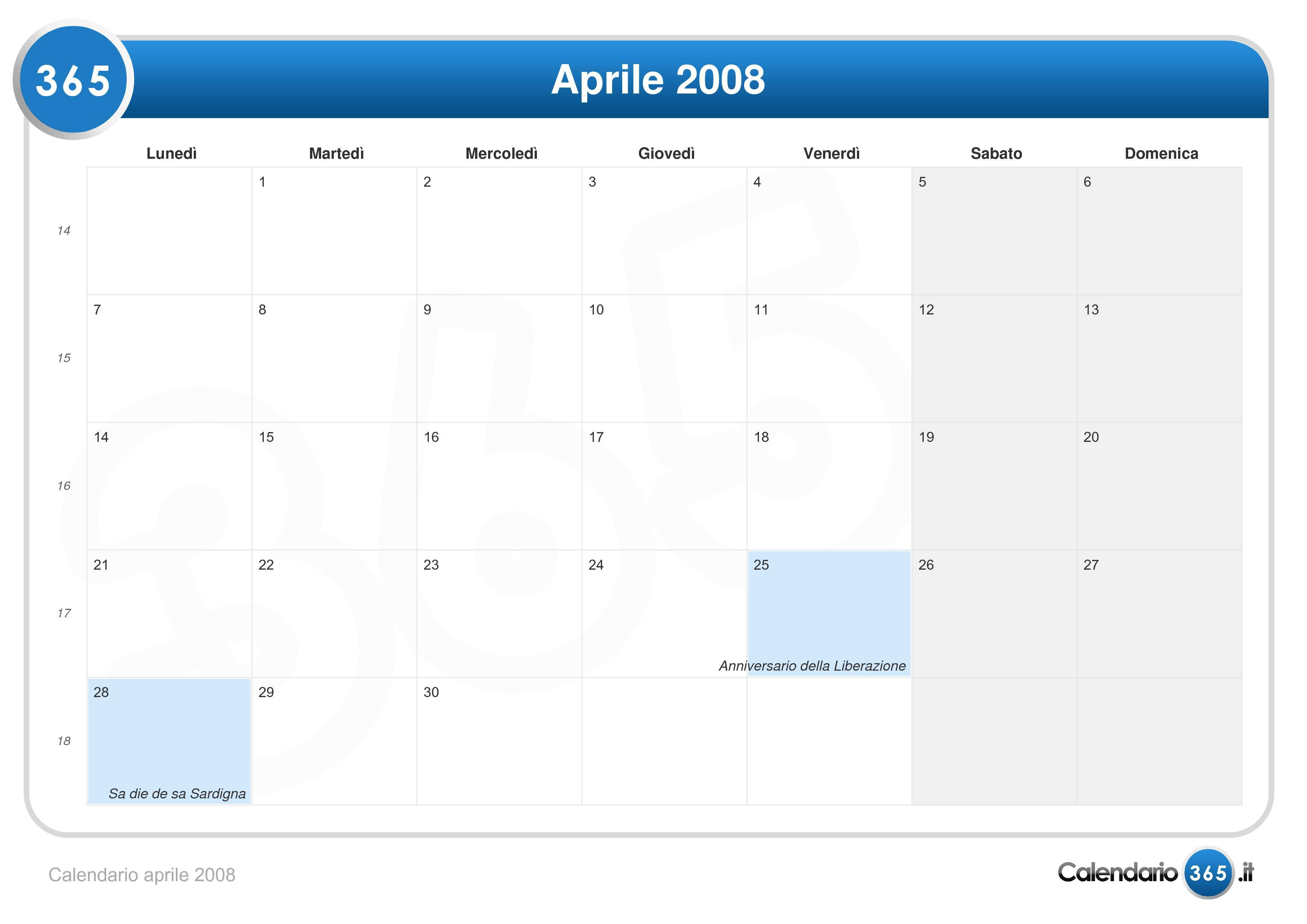 Calendario aprile 2008 (Formato orizzontale)Vai al Calendario 2008.