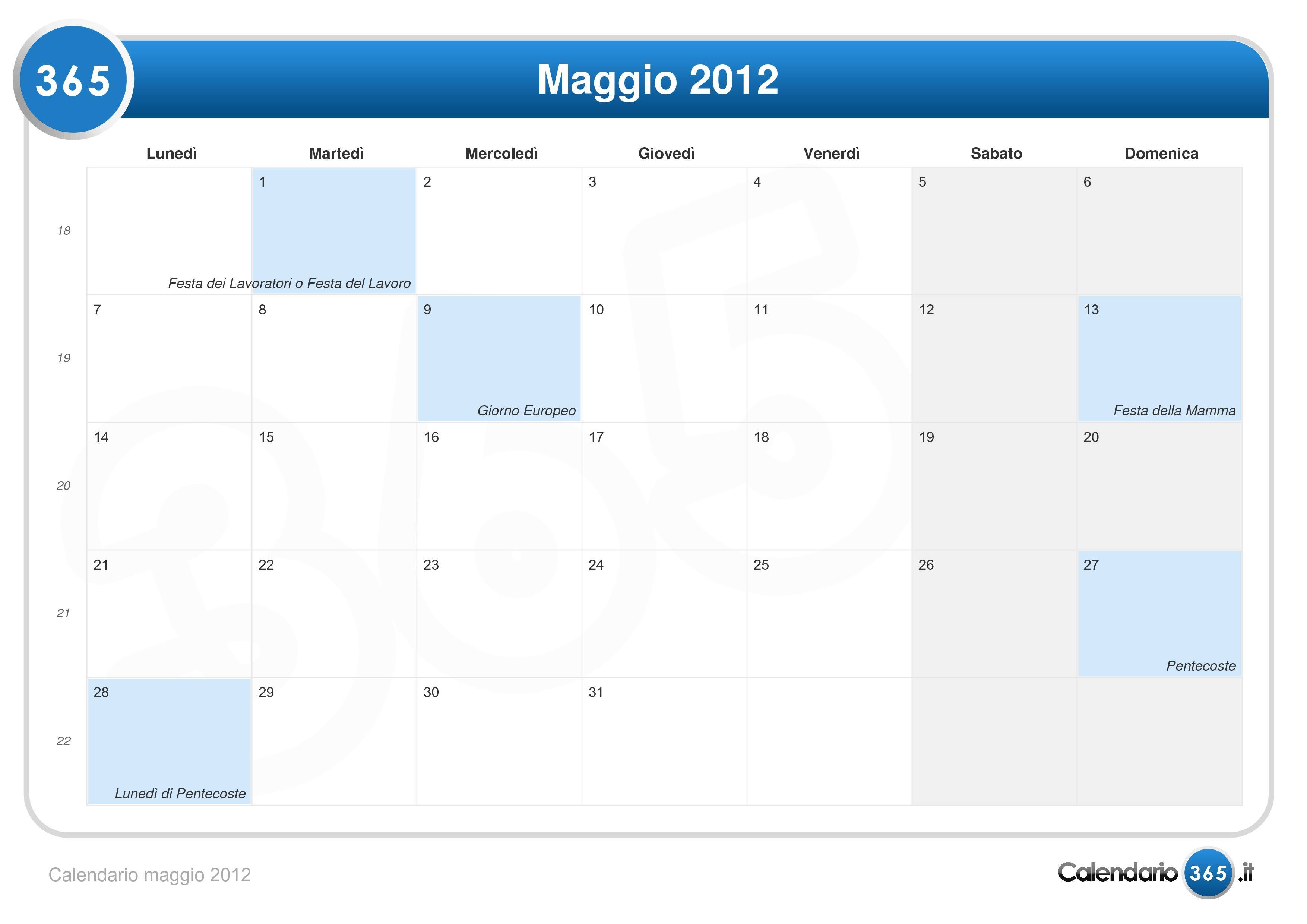 Calendario maggio 2012 (Formato orizzontale)Vai al Calendario 2012.